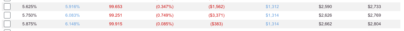 Here’s an example of a discontinuity where the 5.625% rate actually costs you less (column 5) out of pocket as a buy-down than the 5.750% rate.
